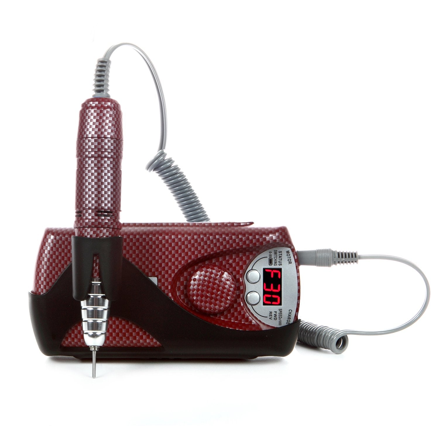The control box has an illuminated power indicator, variable speed dial, forward and reverse button.